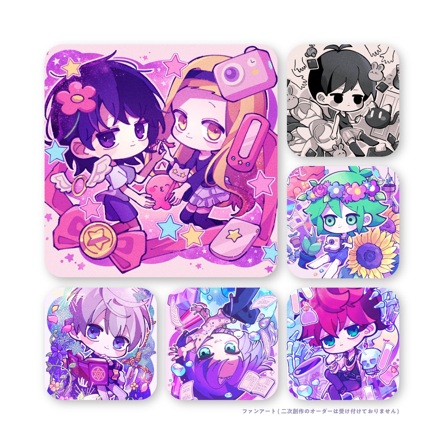 キャラクターデザイン|背景付きイラストの制作|表情差分|制作実績への掲載不可|当サービスのご利用を除く同人誌などへの掲載および商用利用